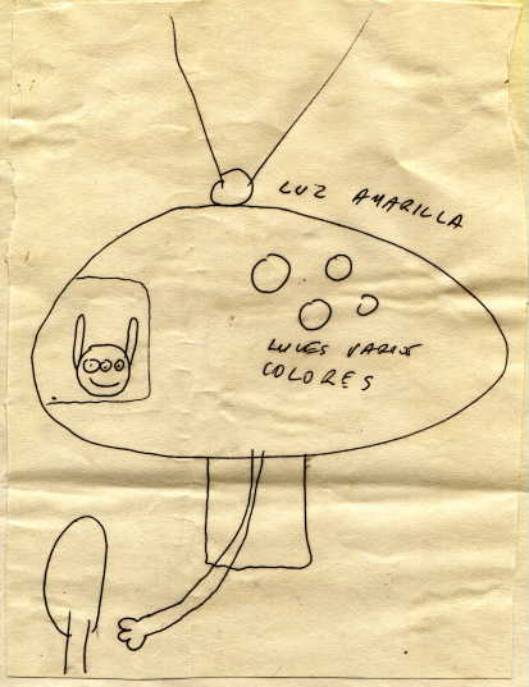 Tuve muchísimo miedo y por las noches pensaba que se me podía aparecer de nuevo... sigo teniendo más o menos miedo, entonces pensaba que la cosa vendrá de nuevo... nuestra perrita estuvo siempre como enloquecida, lo que nunca: Quería entrar a la casa.... se tiraba contra la puerta, desesperada......primero mamá no quería creerme, pero después se enteraron lo que esa misma noche en la madrugada ocurrió aquí muy cerca, donde aparecieron OVNIS que levantaban las vacas dejándolas caer a varios metros de distancia... el aparato parecía un plato, era grandísimo y redondo, yo le veía la parte de abajo, estuvo arriba mío... tenía mucha luz... yo estaba muy asustada... la mano era verde y tenía tres dedos, el brazo se estiraba como un chicle...